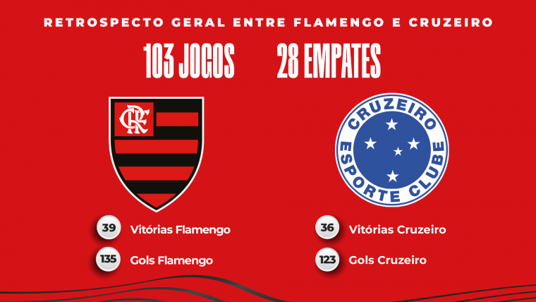 Confira o retrospecto geral do confronto entre Flamengo x Cruzeiro: