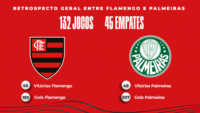 Confira abaixo o retrospecto geral do confronto entre Flamengo x Palmeiras na história: