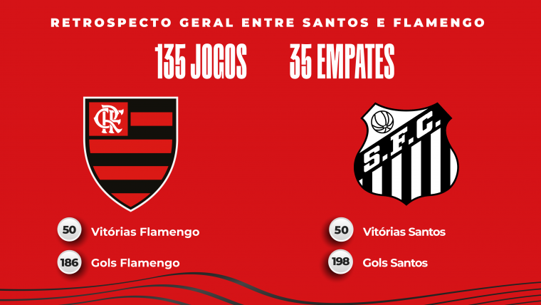 Confira abaixo o retrospecto geral do confronto entre Flamengo x Santos na história:
