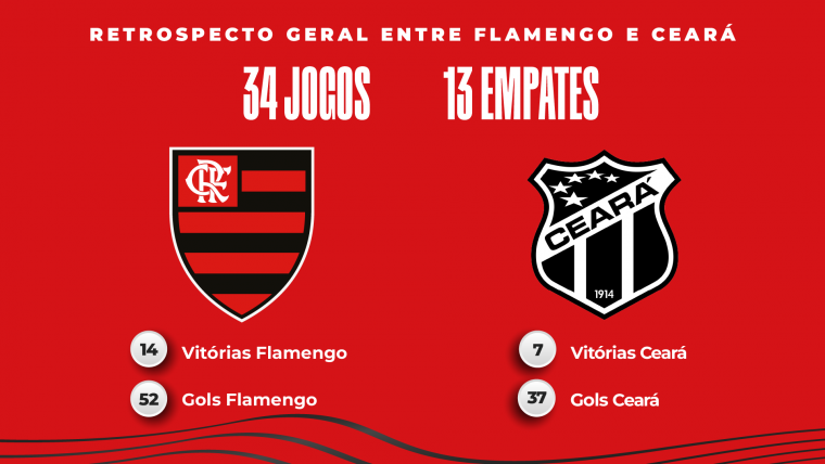 Confira abaixo o retrospecto geral do confronto entre Flamengo x Ceará na história: