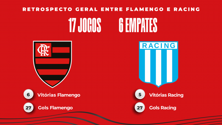 Confira abaixo o retrospecto geral do confronto entre Flamengo x Racing na história:Veja as últimas notícias do Mengão no FLAPRESS: