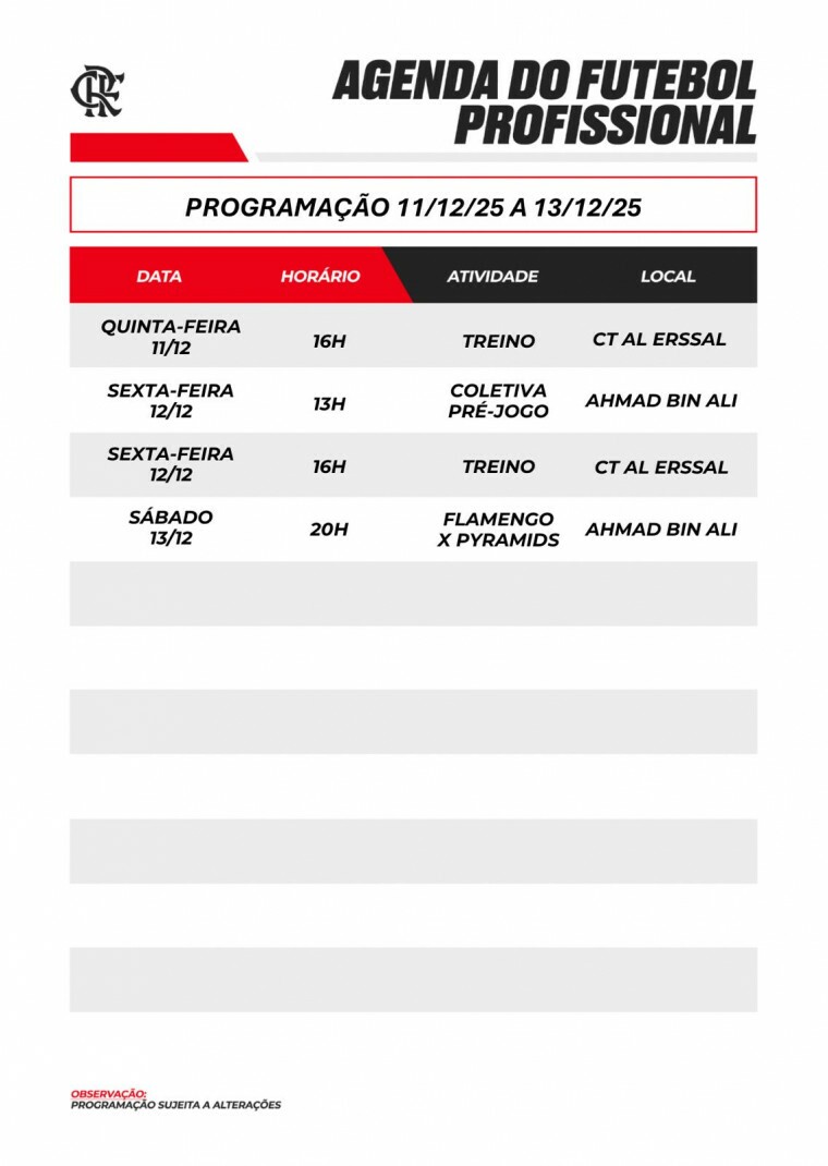 Agenda do futebol profissional (11/12 a 13/12)
