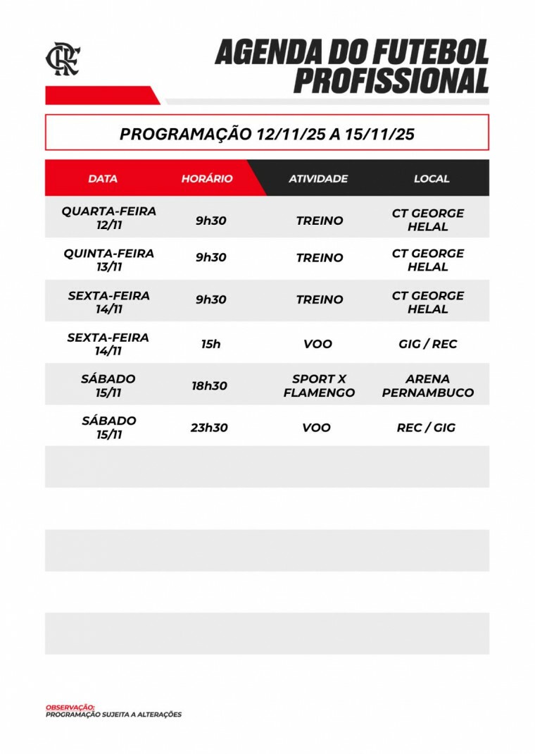 Agenda do futebol profissional (12/11 a 15/11)